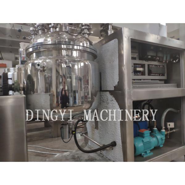 Vacuum Planetary Mixer is composed of pre-mixing tank (water tank and oil tank), vacuum emulsifying tank, vacuum pump, hydraulic system, discharge system, electronic system and operating platform.